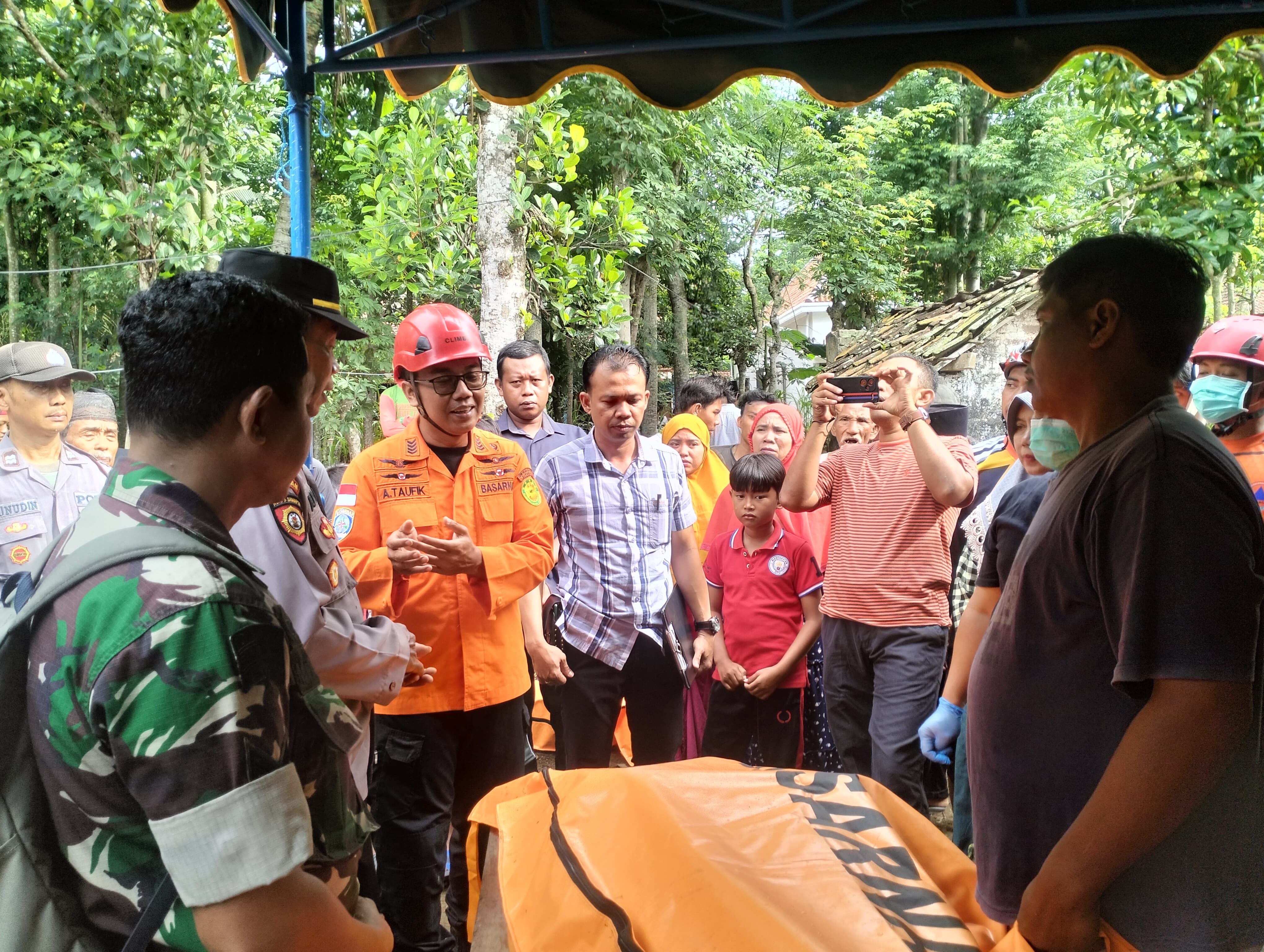 Para personel tim SAR gabungan bekerjasama menarik rescuer dan jenazah korban dari dalam sumur. Setelah berhasil dievakuasi dari dalam sumur, selanjutnya jenazah korban diserahkan kepada pihak keluarga.