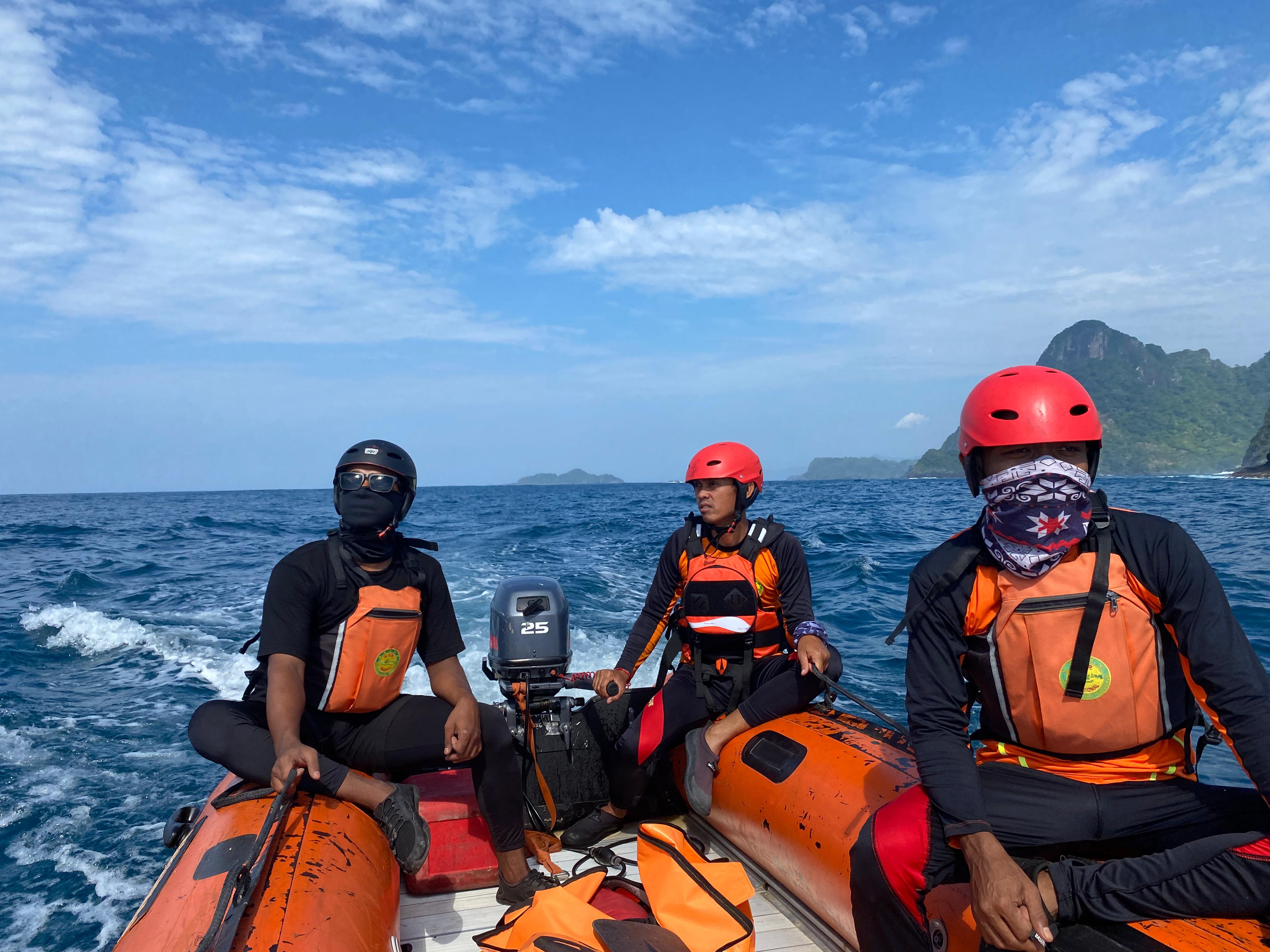 Pada saat yang bersamaan, tim SAR gabungan mengerahkan beberaapa orang personel untuk melakukan penyisiran darat di sepanjang pesisir pantai Damas hingg ake pantai di sekitarnya.